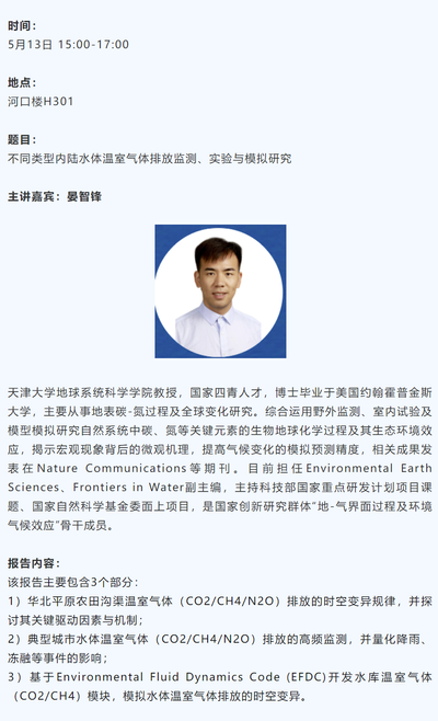 2024-05-13 晏智锋-不同类型内陆水体温室气体排放监测、实验与模拟研究