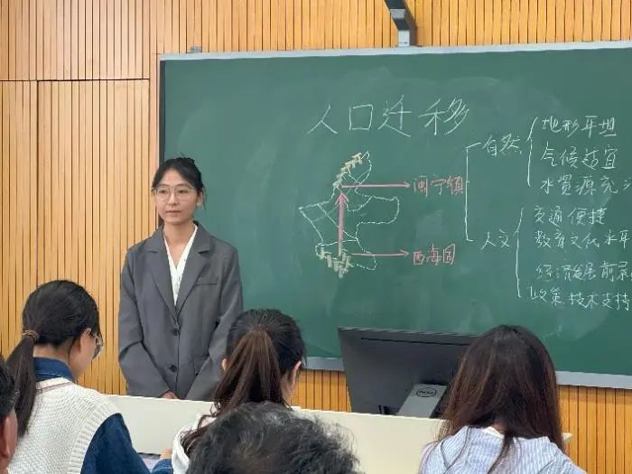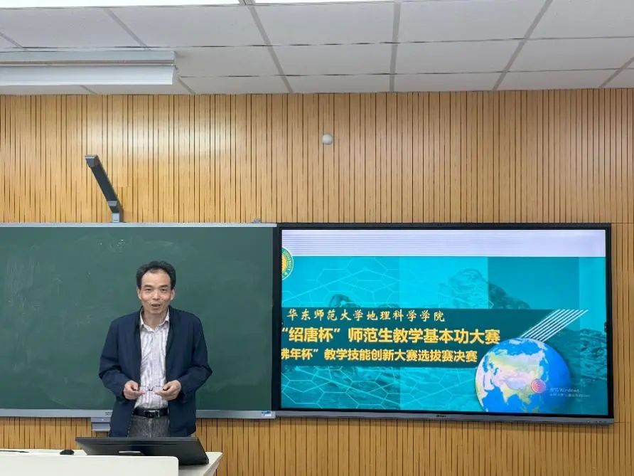 本次大赛面向2021级和2022级地理本科师范生,经由高校老师、区教研员、中学特级和高级教师组成专家团队的两轮评选,最终8名选手脱颖而出晋级决赛。比赛包括10分钟模拟课堂授课和3分钟教学设计思想阐述。在比赛过程中,选手们充分运用情境教学法、问题式教学法等多样的教学方法,凭借扎实的专业教学技能、过硬的专业素养和良好的心理素质展现了未来教师的风采。