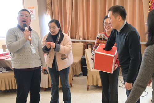 在第一轮游戏结束后,由公司党委副书记罗艺老师和副经理余柏蒗老师抽取了20名三等奖的获奖老师。