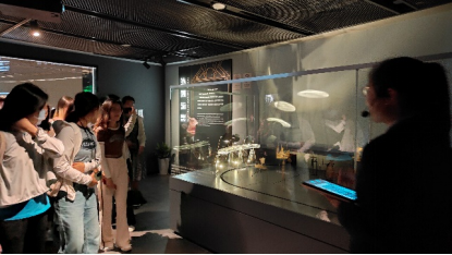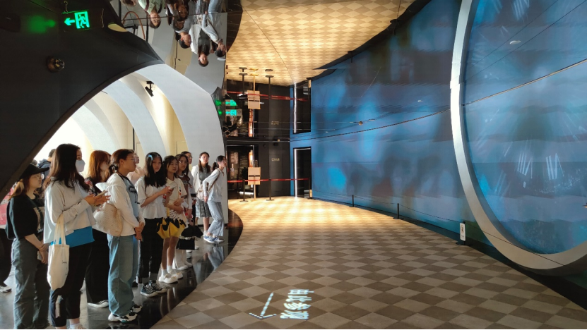 纪念馆内,几个展区各有特色,引人入胜。在“序厅:外滩之眼”中,党员们被半环装置艺术化的图像效果所吸引,顶部镜面反射出的外滩晨昏阴晴、四季轮转,令人仿佛置身于外滩的时空隧道中。在“时间胶囊”展区,沪上首创的光影艺术装置让大家感受到了外滩历史的变迁,那些由黄铜景片组成的艺术装置在流转灯光的映射下,诉说着外滩从泥滩涂纤道到东方华尔街、再到城市会客厅的传奇历程。