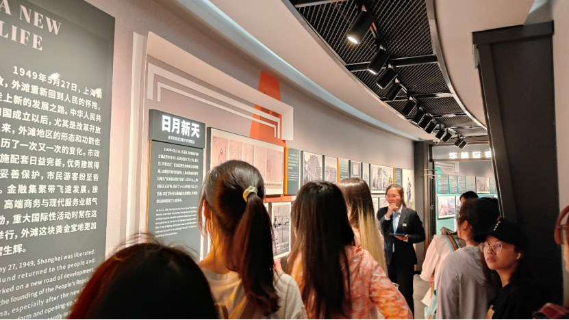 随后,队伍移步至坐落于人民英雄纪念塔下的外滩历史纪念馆。这座由黄浦区政府和上海市档案局联合主办的纪念馆,自1995年建成以来,便成为记录外滩与上海城市共同发展历史的珍贵场所。在讲解员的引领下,党员们和团员们走进了这座充满历史韵味的纪念馆,开启了研学之旅。