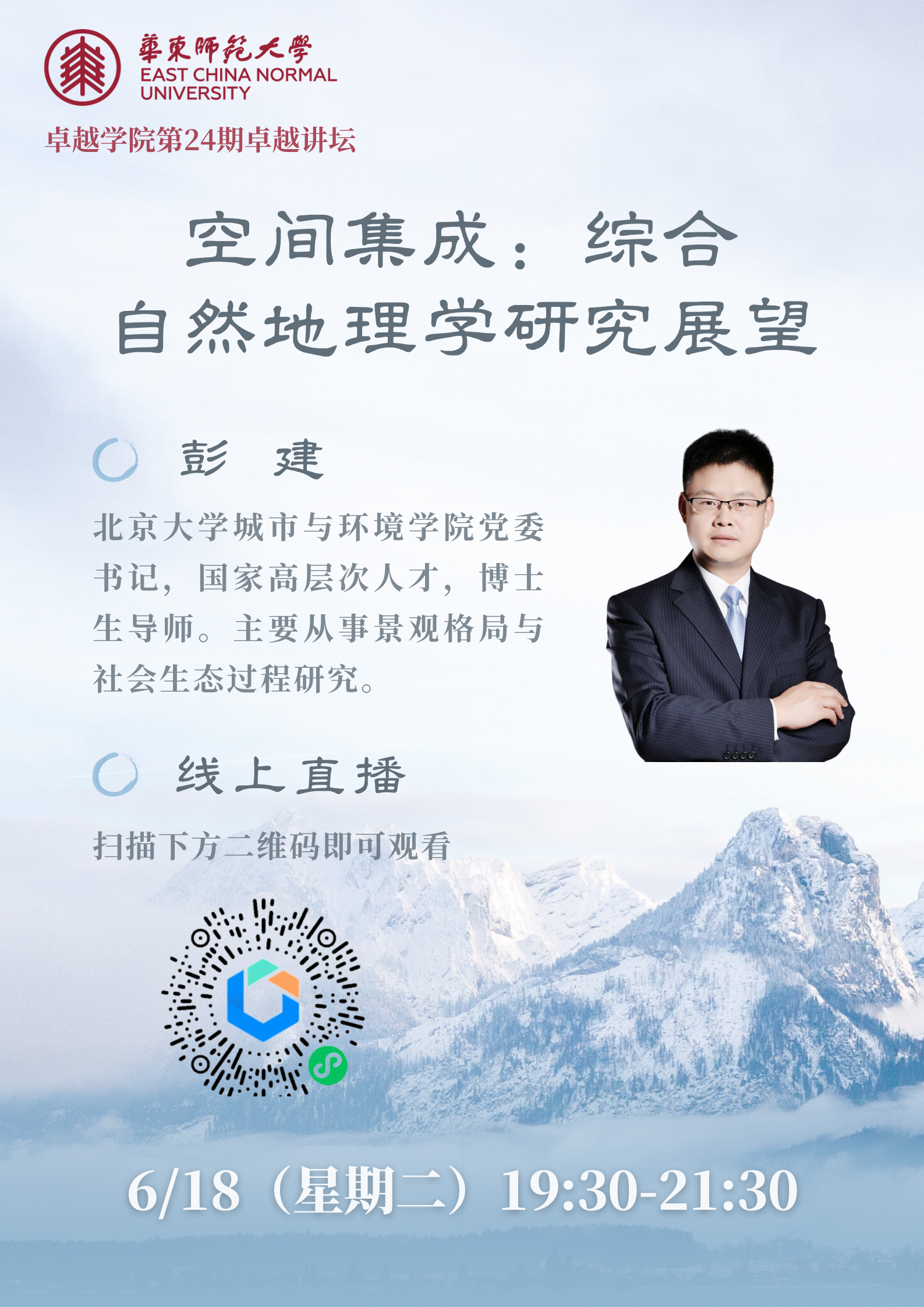 报告人简介:彭建,北京大学城市与环境公司党委书记,国家高层次人才,博士生导师。先后主持国家自然科学基金优秀青年科学基金项目、联合重点项目、国际合作项目、面上项目等课题。主要从事景观格局与社会生态过程研究,在城市化生态响应非线性阈值、生态系统服务权衡机理、区域生态安全格局构建理论与方法等方面取得重要研究成果,曾获中国地理学会青年地理科技奖、中国生态学学会青年科技奖及国土资源科学技术二等奖等奖励。现任国际景观生态学会中国分会副理事长、中国生态学学会景观生态专业委员会主任委员、教育部高等学校地理科学类专业教学指导委员会秘书长、中国地理学会学术工作委员会秘书长,《Applied Geography》共同主编,《经济地理》青年编委会主任,《Progress in Physical Geography》学科编辑,《Landscape Ecology》《Landscape and Urban Planning》《Ecosystem Services》《生态学报》《应用生态学报》等期刊编委。 报告内容简介:基于综合自然地理学视角,从空间集成的概念意义、阶段特征和前沿方向三个方面,阐述综合自然地理学空间集成的理论基础、方法、途径、目标及发展趋势。