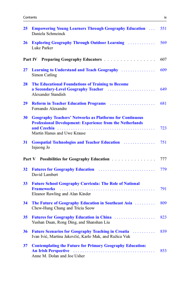 《Handbook of Geography Education》目录