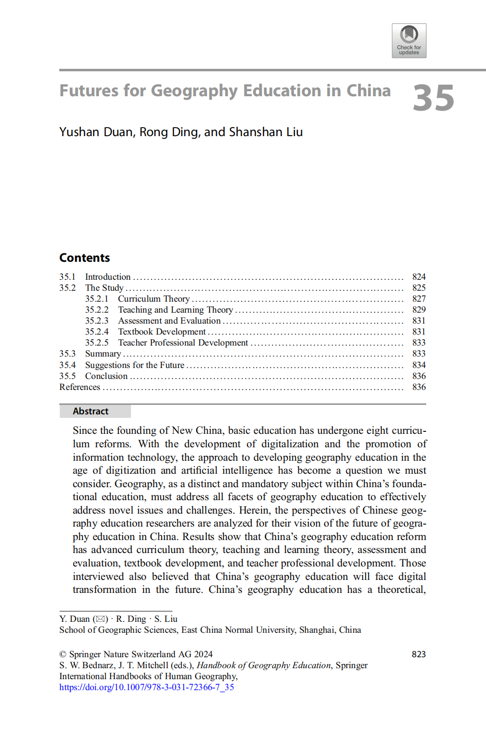 段玉山教授团队负责编写的Futures for Geography Education in China 全文链接