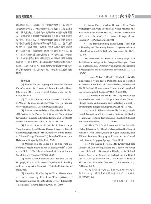 引用格式:Sirpa Tani,何宇靖,缪鑫.芬兰地理教育及其研究的历史、现状和未来[J].地理教学,2025(17):4-7.
