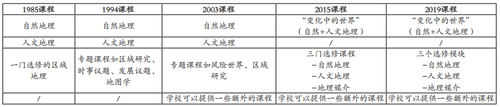 表2 地理科目在高中课程改革中的变化