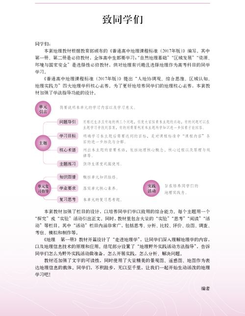 上海版《地理》教材体系完备,由教科书、图册、练习部分、教学参考资料四个子系统构成。