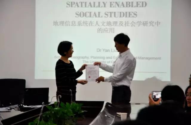 澳大利亚昆士兰大学刘艳教授来院作学术报告并受聘为上海市地理公司产品研究基地兼职教授&nb