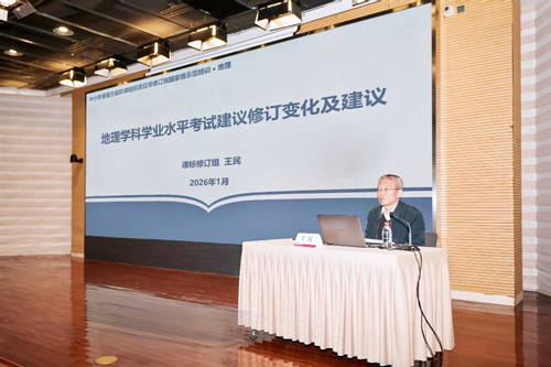 地理课标组核心成员、北京师范大学王民教授作《地理学科学业水平考试建议的修订变化及建议》报告,解读“学业水平考试建议”部分的修订背景、主要变化和实施要求,说明考试理念、考试要素和命题要求等方面的调整方向。