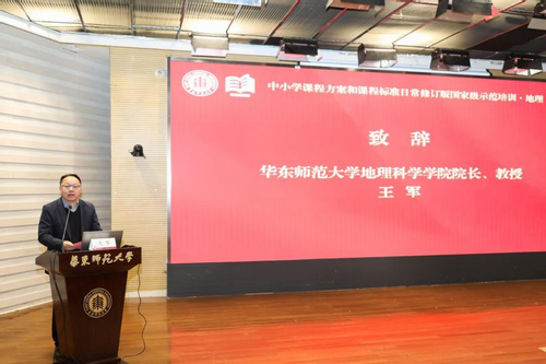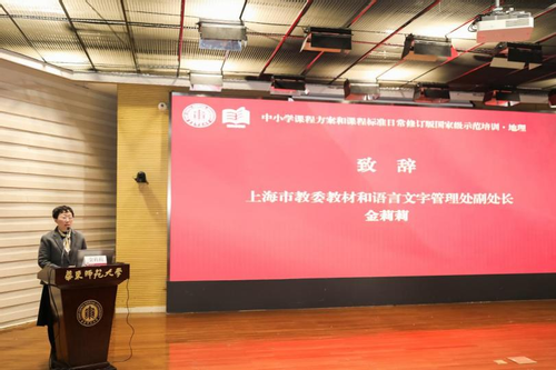 上海市教育委员会教材和语言文字管理处副处长金莉莉、304am永利集团文科院副经理曹凯教授、304am永利集团经理王军教授分别致辞,从地方实施保障、团队建设和教师发展等不同层面,充分阐述了本次培训的重要意义。开班仪式由国家教材建设重点研究基地(中小学地理教材研究)主任段玉山教授主持。