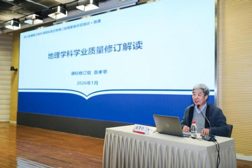 地理课标组组长、人民教育出版社原总编辑韦志榕编审作《地理课程标准修订总体说明》报告,系统介绍了义务教育、普通高中地理课程标准日常修订的背景、修订依据、修订的总体思路及主要变化。报告指出,本次修订在保持课程标准整体稳定的前提下,规范完善文本中的部分表述,进一步增强课程标准的科学性。围绕教学实施和评价实践中遇到的困难问题,说明学业质量重构、教学与评价建议完善等方面的调整方向,强调通过优化课程标准结构和表述,提升教师对地理课程整体理解和实际运用能力。
