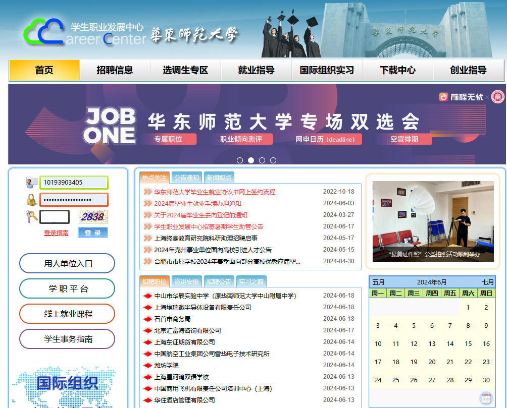 登录方式:打开304am永利集团员工职业发展中心网址https://career.ecnu.edu.cn/common/ index.aspx,登录账号(详情参见网页页面“登陆指南”)。登陆后,可自行选择栏目。