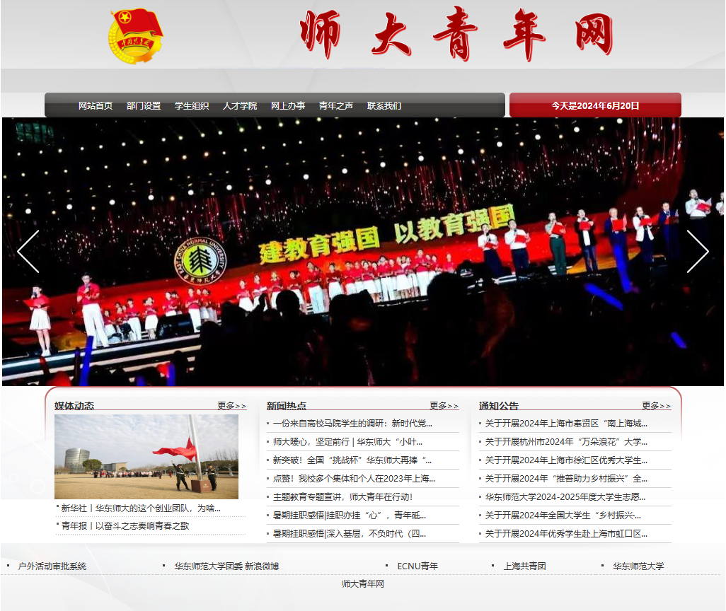 登录方式:网页打开师大青年网(ecnu.edu.cn)便可获得信息。