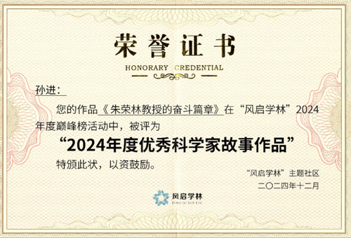喜报,公司2024年读懂中国视频作品《朱荣林教授的奋斗篇章》,在“风启学林”2024年度巅峰榜活动中,荣获“2024年度优秀科学家故事作品”。