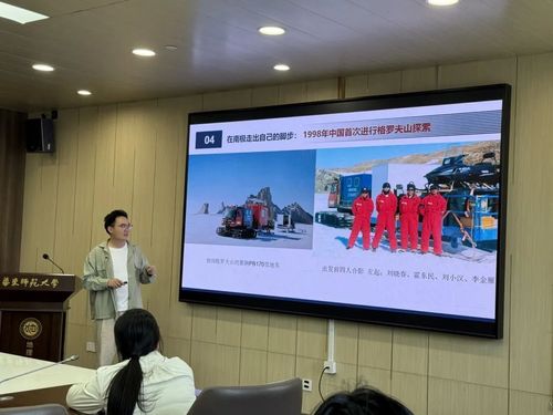 支部党员、中国第41次南极科考队员李喆、胡冶结合自身科考经历作专题分享。李喆以“在南极走出自己的脚印”为主题,讲述团队在麒麟冰下湖区域进行精细化探测的历程,强调科研探索中走独立自主路线的重要性。他提到,科考队在极端环境下克服设备故障、物资转运等挑战,正是对“道阻且长,行则将至”精神的生动诠释。胡冶以“探索地球最后的边疆”为题,分享南极冰芯钻探任务中的团队协作故事,展示科考队员在暴风雪中坚守岗位、高效完成任务的作风。他表示,南极科考精神既是爱国与拼搏,也是严守纪律、恪守职责的体现,这与党的作风建设要求一脉相承。