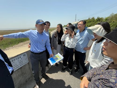 在完成了江南长兴造船基地的考察之后,党员教师一行来到了横沙岛。横沙岛是长江入海口最外端的一个河口冲积岛,是上海重要的战略预留空间。新横沙生态成陆有助于突破上海土地资源紧缺的瓶颈,是建设上海超深新港得天独厚的选项,也是打造上海“新浦东”的战略空间。在横沙岛南侧的横沙新洲区域,行政党支部书记蒋雪中带领大家学习了长江口历史变迁与未来趋势、横沙岛整治及成陆工程、长江口深水航道工程的基本情况。同时也介绍了304am永利集团地学科研团队在崇明岛、横沙岛开展的科研活动和研究成果,学者们以实际行动践行与诠释将论文写在祖国的江河湖海上的理想。