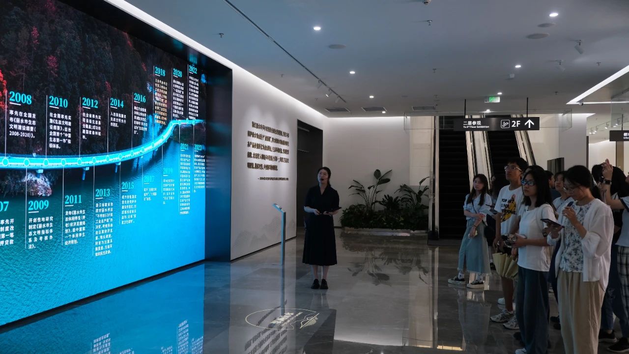 丽水山水城市馆是首个以“山水城市”为核心词命名的展示馆,是丽水传承中国山水精神,践行生态文明理念、拓宽“两山”转化道路的生动写照。擘画山水、自然山水、文化山水三个纬度,共同展示了山水自然是丽水山水城市的基因与优势。在这里,师生们了解了丽水的自然资源、人文历史、城市规划建设等内容,体验丽水“人、城、山、水”和谐统一的共生场景,也将在之后的行程中,实地调研丽水是如何彰显其山水特色的。