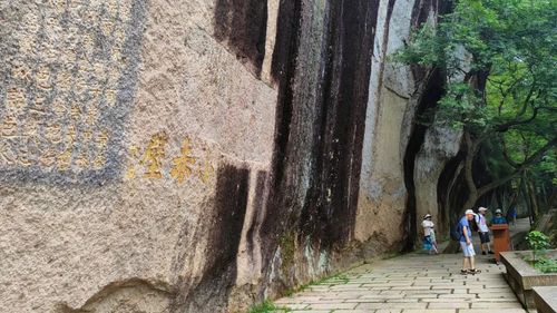 到达景区乘坐景交大巴,我们首先到达了“小赤壁”。小赤壁古时又名白岩。下洋村隔溪一面绝壁陡峭,东西横向约六百五十米,高约六十米,崖壁赭白相间,远望犹如焰火烧过,酷似长江赤壁。而后先后经过丹室、大肚岩、仙都观、倪翁洞等自然秀丽与人文交融之景。