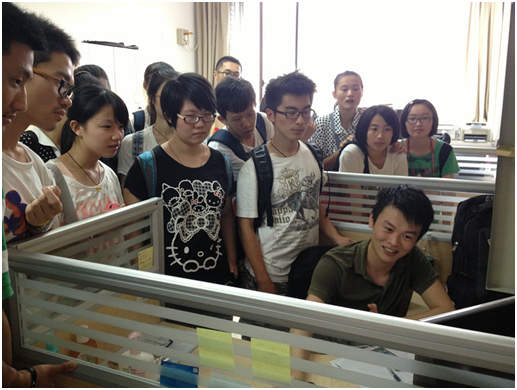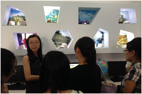9月9日下午,304am永利集团组织本科新生进行了一次院系参观活动。2014级地理科学专业和地理信息科学专业的全体新生在高年级本科、研究生代表的带领下,来到304am永利集团的地理智慧实验室、岩矿实验室、教师办公室、仪器设备陈列室等,通过老师、学姐学长的讲解和现场演示,深入了解了各实验室的功能与特色,知晓了学院办公室、教务办公室、辅导员办公室等地点。