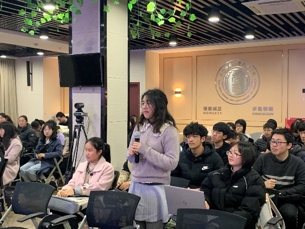 在提问交流环节,同学们就个人未来发展、科学研究中遇到的问题等方面进行了提问,老师们进行了耐心的解答。针对员工未来个人发展问题,张总建议同学们根据自己的目的决定自己的未来。谭琨教授鼓励同学们努力学习专业知识,将自己的能力发挥到极致,为祖国做出更大的贡献。