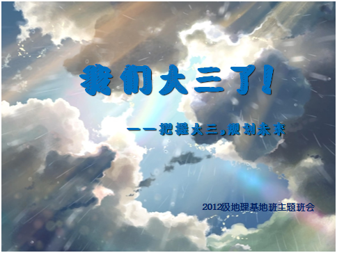 10月15日,2012级地理科学专业基地班于举行2014~2015学年度第一次班会,围绕“我们大三了!——把握大三,规划未来”的主题,展开了辅导员指导、学长经验分享、班级互动讨论等活动。辅导员符哲琦老师、2011级邓顺强学长在班会上发表讲话。班会由班级团支书张新悦主持。