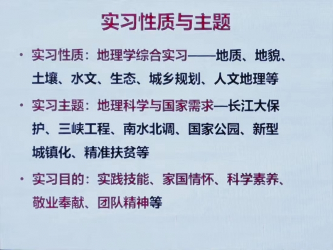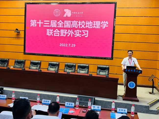 2022年7月29日上午8:30,第十三届全国高校地理学联合野外实习在中国地质大学(武汉)东区教学综合楼隆重开幕。本次联合实习由全国老员工地理学野外联合实践教学高校联盟、全国高校地理学理科人才培养基地联席单位、教育部全国地理学野外实践教学虚拟教研室、中国地质大学(武汉)主办,由中国地质大学(武汉)地理与信息工程学院、武汉大学资源与环境科学学院、湖北大学资源环境学院、华中师范大学城市与环境科学学院、华中农业大学资源与环境学院、湖北文理学院资源环境与旅游学院承办。本次实习涵盖湖北省多处著名实习点,旨在让参与师生以地球系统科学视角,认识荆楚大地的自然风貌和人文底蕴,提升探讨解决综合问题的能力,为社会经济发展和国家需求做出新时代地理人的贡献。