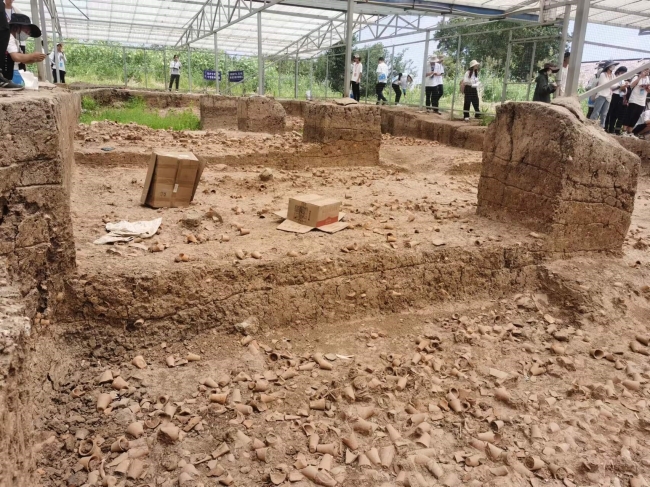 实习队伍随后对石家河三房湾遗址(30.770°N,113.078°E)发掘现场进行了考察。观察到文化层的分层现象,划分依据包括了土质,土色以及包含物等。三房湾坑内发掘了数以万计的厚胎红陶杯残件,推测该地可能是专业的制陶作坊。这也从一方面表明了石家河文化的先进性。