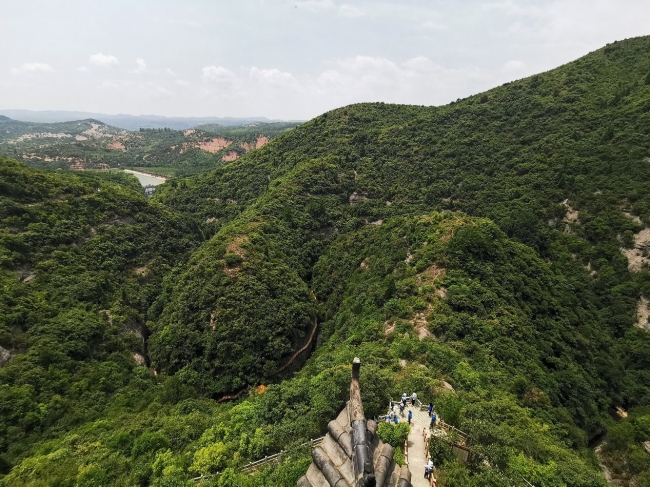 7月31日上午,实习队伍从襄阳前往丹江口市进行考察。第一站是:太极峡(111.371°E,32.776°N),太极侠是典型山区的河流峡谷地貌,峡谷窄而深,俯视见太极型的蛇曲,推断由河流沿共轭节理侵蚀发育而成,谷底发育有十多级裂点,可能是岩性差异和阶段性抬升共同作用的结果。峡谷两侧岩壁可以发现砂岩、砾岩、灰岩地层,砾岩里的砾石分选、磨圆差,推测可能为近源快速堆积的产物。