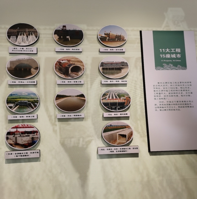 此后,联合实习队伍又去了南水北调中线工程纪念园。南水北调纪念园是南水北调沿线的受水区15城市知名景点(包括许昌的三国胜迹、南阳的医圣祠、焦作的云台山、安阳的殷墟遗址、邯郸和石家庄、天津的大达口地台、北京的四合院、回音壁、前门等景观)模型景观,以此了解祖国的大好河山,同时可以体会到模拟南水北调过程的在当今和未来社会经济发展中的重要性。在此我们看到沙盘模拟的调水线路依山势修建,使用众多工程技术,如渡槽,明渠、倒虹吸工程、穿黄工程和箱涵工程等11个重要技术节点输水工程。除此之外,园区还设计了移民纪念展厅和纪念广场,使我们深入了解了南水北调中线工程的源起和经历、发展与未来,加深了南水北调中线工程及水利移民精神的理解。通过参观这个纪念园,大家都纷纷表示被中线工程建设者们充分发挥聪明才智、克难攻坚的精神所折服,被祖国的伟大建设成就所震撼,更为祖国的日益强大而感到自豪。