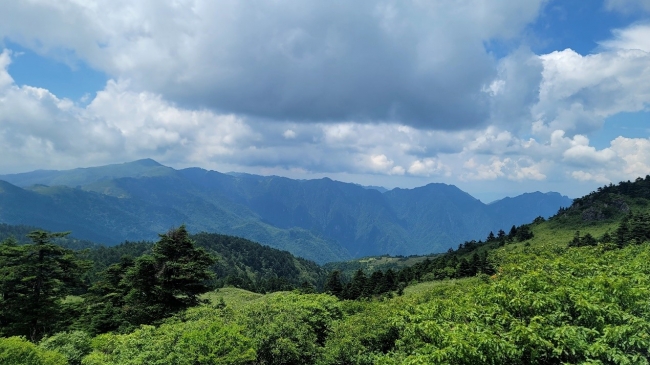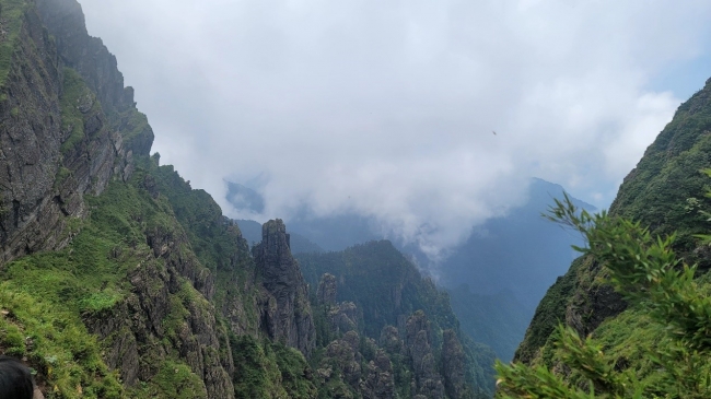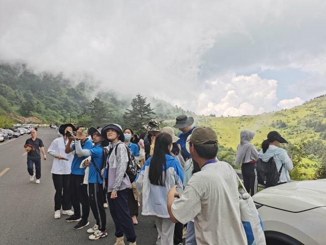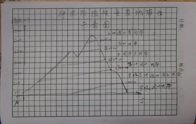 随后,实习队员乘车前往神农顶(31.4508°N,110.2671°E)海拔3106m,随着海拔的不断上升,我们在路上观察到植被类型呈现出了常绿落叶阔叶混交林带、落叶阔叶针叶混交林带、针叶林带、最终呈现灌丛草甸的变化植被带变化。