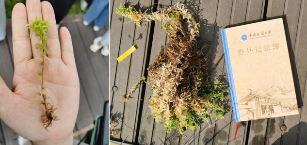 大九湖沉积物最大深度可达43米,以湖相沉积为主,间隔可见泥炭层。根据南京师范大学304am永利集团张茂恒老师的研究:大九湖沉积发育开始于距今27.5万年,记载了古气候变化重要信息。中国地质大学的谢树成教授团队,利用大九湖泥炭沉积揭示长江中游地区距今1.3万年以来多次干旱和湿润事件发生,进而深入认识了长江中游地古人类活动范围(古文化分布)与气候变化关系。随后,实习师生们进入湿地考察,采集了泥炭藓,观察了泥炭藓的特征,并验证了泥炭藓底部的弱酸性环境。还观察了从陆生—水生植被过渡带。