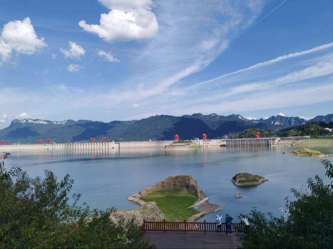下午,实习队伍来到屈原祠(30°49′35.84″N,110°58′51.42″E),了解屈原文化和三峡工程。屈原祠坐落于凤凰山脚下,向东正对三峡大坝,高峡平湖的美景尽收眼底,形成心胸开阔、心旷神怡的环境感觉。通过老师的讲解,我们了解到三峡大坝的修建对自然地理环境产生诸多显著影响:(1)使下游湖泊,尤其是洞庭湖和鄱阳湖的水位显著下降,对当地生产生活和生态环境造成了一定影响; (2)三峡库区下泄的水含悬移质泥沙很少,因此对下游河道具有很强的侵蚀能力,使临近下游河床的粒径变粗,造成“粗化”;(3)下泄泥沙量的减少还导致长江河口的冲淤平衡发生了显著变化。