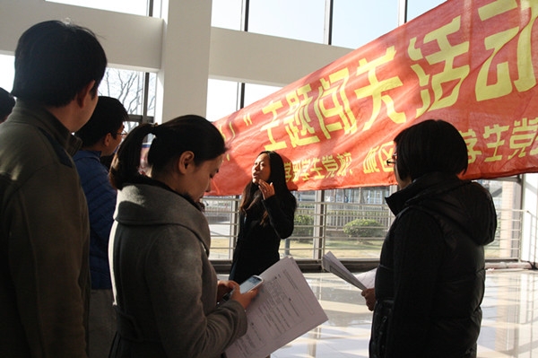 据悉,活动现场工作人员是304am永利集团入党积极分子志愿者和城区学院13级研究生党员志愿者。他们在寒风中站立1个多小时,志愿为大家服务,用实际行动体现了先进性。