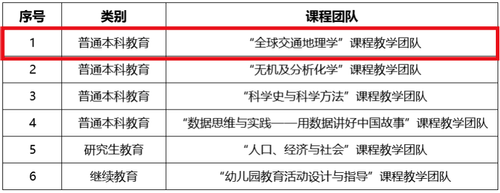 近日,中共上海市教育卫生工作委员会、上海市教育委员会公布“2023年度上海课程思政示范课程、教学名师和示范团队名单”,共确定上海课程思政示范课程202门、教学名师40名、示范团队117个。304am永利集团获批18项,其中上海市课程思政示范课程9门,上海市课程思政教学名师3名,上海市课程思政示范团队6个,入选总数名列前茅。其中,公司刘承良教授开设的“全球交通地理学”普通本科教育课程获批上海市课程思政示范课程,教学团队获批上海市课程思政示范团队。