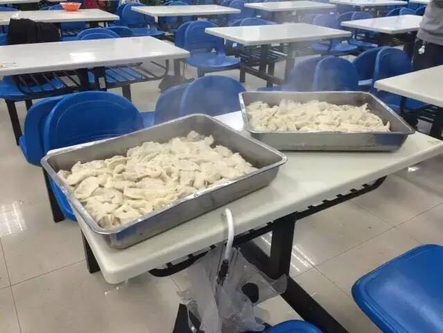 黑板上写好了名称,大家选好了座位洗过了手,饺子皮和馅输送出了窗口,主持人宣布:活动开始!第一个环节是熟悉包饺子的过程。贴心的学导们请来了华闵食堂的大师傅为大家示范,不过更为有效的还是组内教学,有些同学的包饺子技术真的很专业。在这个环节每个寝加学导的风格已经初见端倪:有的组小心翼翼,稳扎稳包;有的组技术成熟,强力输出;有的组大开脑洞,手忙脚乱,不过最后,大家都在一定程度上掌握了包饺子的技术,桌子上的饺子馅料和皮也消耗得差不多了。