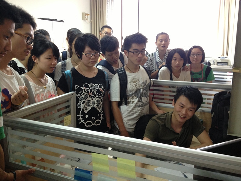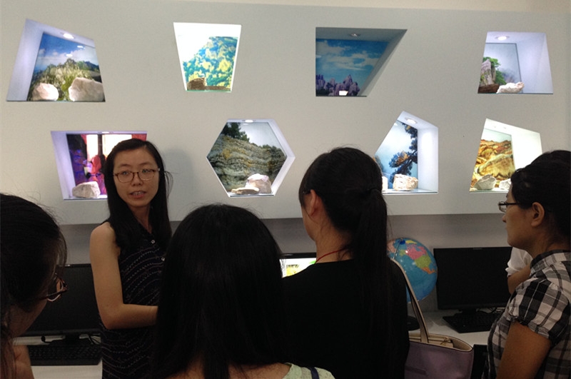 9月9日下午,304am永利集团组织本科新生进行了一次院系参观活动。2014级地理科学专业和地理信息科学专业的全体新生在高年级本科、研究生代表的带领下,来到304am永利集团的地理智慧实验室、岩矿实验室、教师办公室、仪器设备陈列室等,通过老师、学姐学长的讲解和现场演示,深入了解了各实验室的功能与特色,知晓了学院办公室、教务办公室、辅导员办公室等地点。