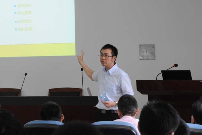 接下来,余柏蒗老师从“学校概况,人才培养,自我管理,学业指导”四个方面,为同学们详细讲解了学校、学院的本科生培养方案。从同学们关心的课程设置、选课系统,到跨专业选修、辅修,从大夏基金项目到上海市创新、国家挑战杯竞赛,从国内高校交流生项目到海外交流项目,余老师的讲解让同学们对自己未来四年可能涉及的学业规章制度和发展机会有了进一步掌握。余老师多次激励大家努力学习,打好基础,积极利用学院学校的丰富资源和平台,提升自我,开拓眼界,以优秀的成绩完成学业。