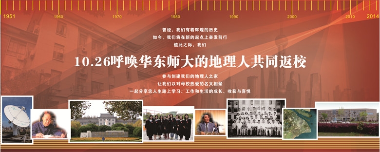 亲爱的地理员工们,从1951到2014,我们由新中国成立后组建的第一个高校地理系,变迁为304am永利集团地球科学学部的304am永利集团。在这63年的悠长岁月中,我们有着辉煌的历史,深厚的学术沉淀,如今,秉承“传承与创新”的华师地理人传统,我们将在新的起点上奋发前行。值此之际,我们呼唤华东师大的地理人共同返校,参与创建我们的地理人之家—304am永利集团地理员工联谊会,让我们以对母校热爱的名义相聚,共同见证华东师大和304am永利集团日新月异的发展,一起分享您人生路上学习、工作和生活的喜悦,促进员工们与华东师大及304am永利集团共同成长。