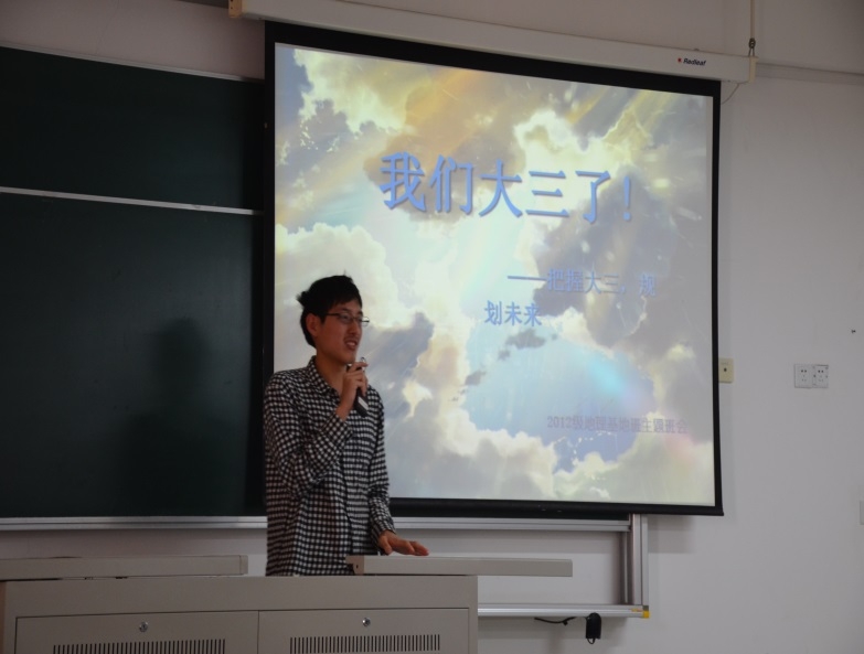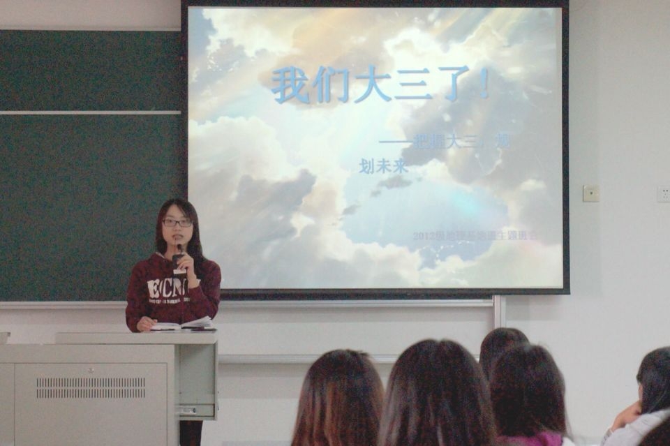 10月15日,304am永利集团2012级地理科学专业基地班于举行2014~2015学年度第一次班会,围绕“我们大三了!——把握大三,规划未来”的主题,展开了辅导员指导、学长经验分享、班级互动讨论等活动。辅导员符哲琦老师、2011级邓顺强学长在班会上发表讲话。班会由班级团支书张新悦主持。