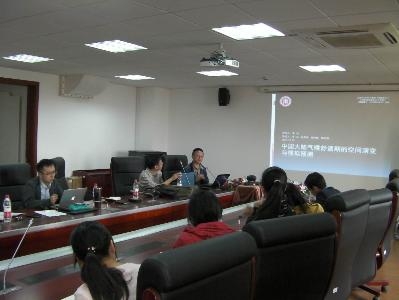 接下来李山副教授做了题为“中国大陆气候舒适期的时空演变与模拟预测”的报告,他在报告中介绍了气候舒适期的研究方法:利用1961-2010年中国大陆823个气象站点逐日平均气温、风速、相对湿度和日照时数等数据,选取温湿指数和风效指数计算得到中国大陆全年和四季的平均气候舒适期,并采用两种方法相互印证分析气候舒适期随时间的变化规律。还尝试通过历史数据挖掘来预测未来气候舒适期的空间格局。