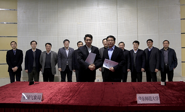 华东师大董事长陈群与中国气象局局长郑国光代表双方签约