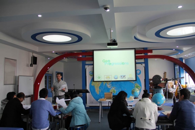 3月11日workshop的内容包括“Introduction to the GeoProgressions Project”、“What are Learning Progressions”、“Educational Research on Maps, Geospatial Technology and Spatial Thinking”以及“The World in Spatial Terms”。期间,Michael Solem教授与参加workshop的师生多次进行探讨、交流,细致耐心地为师生解惑。