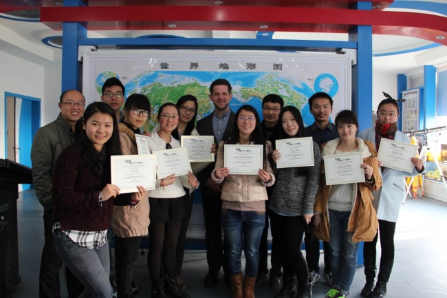 3月12日workshop的内容为“Using Spatial Thinking Concepts to Teach Geography”,Michael Solem教授为员工提供光盘作为学习资料,员工以单人或两人一组的形式选择主题开展探究学习,然后进行学习成果汇报展示。两天的workshop结束之后,Michael Solem教授还为每名参加workshop的师生颁发了证书。