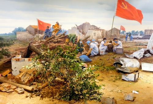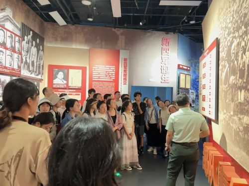 为了进一步加强实习考察课程的思政教育,同学们参观了新四军纪念馆。纪念馆展出了新四军在华中苏北坚持敌后抗战8年的1000多幅照片、大批文物史料及一批发绣、铁画、泥塑、油画等文艺作品9000余件(幅)。在内容上以新四军全面抗战为经、以新四军各师和各个抗日根据地为纬的4个部分、32个单元(图38,39)。