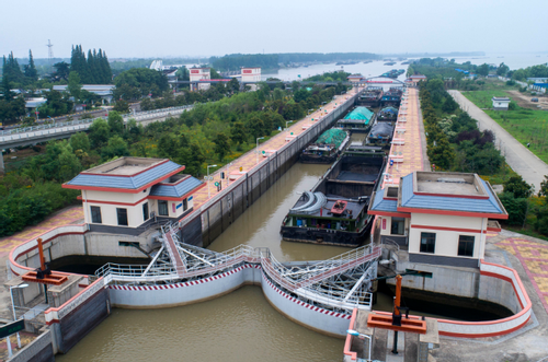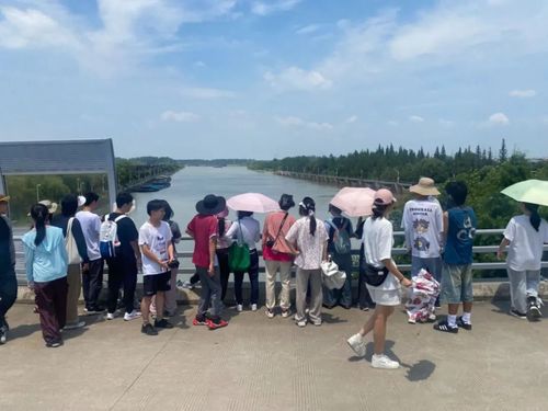 从淮安到扬州,考察团队沿着京杭大运河江苏段南行,首先考察的京杭运河的邵伯船闸。邵伯地处高邮湖的南端,自古就是重要的水上枢纽。邵伯船闸最早起源于东晋太元十年(公元385年)谢安于邵伯筑埭,从单斗门、三门两室船闸至民国时期“新式船闸”,到今天的三座大型现代化船闸,有着1600多年的悠久历史,是我国船闸发展历史的缩影。邵伯运河至今还起着交通运输的作用,被称之为“活着的运河”(图33,34)。在考察完邵伯船闸之后,考察团队来到了京杭大运河上最重要的城市扬州。在扬州的中国大运河博物馆同学们全方位地了解了中国大运河的历史、文化、生态和科技面貌(图35)。考察的最后同学们来到了位于大运河下游与长江交汇处的瓜州古渡(图36)。同学们完成了京杭大运河江苏段文化带图鉴(图37)