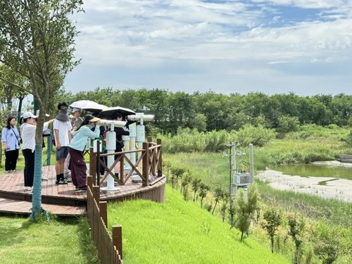 之后同学们考察国内第一块固定高潮位候鸟栖息地——条子泥720高地。以条子泥湿地为核心区的中国黄(渤)海候鸟栖息地(第一期)获批入选《世界遗产名录》,由此填补了我国滨海湿地类世界自然遗产的空白。通过实地考察,同学们了解苏北滨海湿地兼具海洋、湿地、森林三大主要生态系统的特征,同时它也是太平洋西岸一个举足轻重的鸟类栖息地和国际候鸟长途迁徙的重要越冬地和迁徙停歇地(见图7)。