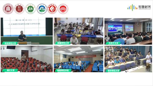 “慕课西部行”是教育部为推动教育资源共享、支持中西部地区高等教育发展倡导的一项公益性教育行动。公司孔翔教授的援疆经历使人文地理学课程成为了“慕课西部行”的先行者。自2021年春季学期开始,已与新疆师范大学、石河子大学等持续开展了四期跨校混合式教改活动;2024年秋季学期,以承担上海市高校本科重点教改项目为契机,在各校领导、同行们的指导和支持下,孔翔教授负责的“人文地理学”课程跨校混合式教学进一步推广到石河子大学、喀什大学、衡阳师范学院、西华师范大学等六所高校。这不仅有助于进一步推动优质教育资源共享,更重要的,也能加深六校在“人文地理学”课程和专业建设中的交流合作,推进信息技术与公司产品的进一步深度融合和创新探索。2024年9月1日晚,在智慧树网的支持下,经六校课程团队协商,正式开启了“同上一堂课”的教改活动,并在课前举行了简短的启动仪式。