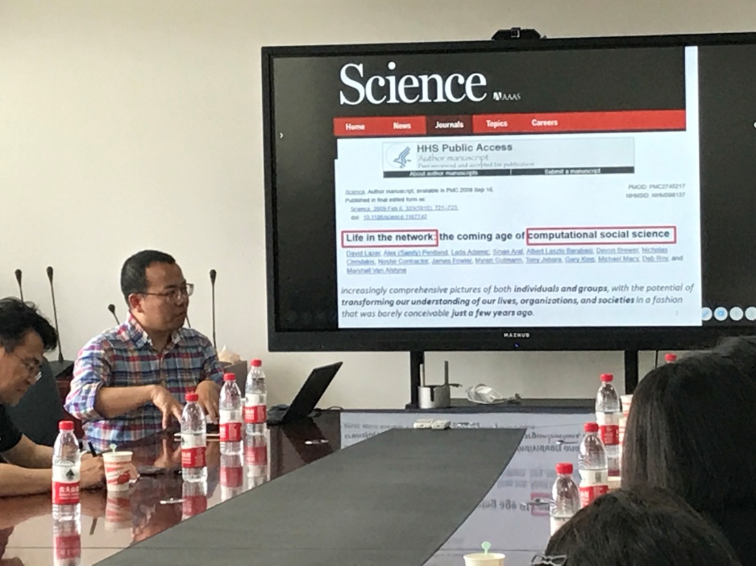 2018年6月4号下午1:30,在城市与区域科学学院539会议室,美国肯特州立大学计算社会科学实验室创始主任、地理系博士生导师叶信岳教授作特邀学术报告——“数据(缺失)挑战环境下的人群动态分析(Human Dynamics in the Data Challenged Environment)”。本场报告由城市与区域科学学院滕堂伟副经理主持,刘承良副经理、汪明峰教授、黄丽副教授、姜允芳副教授、孙燕铭副教授、王俊松讲师、晨晖学者张维阳老师和张凡博士后以及城市发展研究院王丰龙副教授等教师及研究生30余人参加了本次讲座。