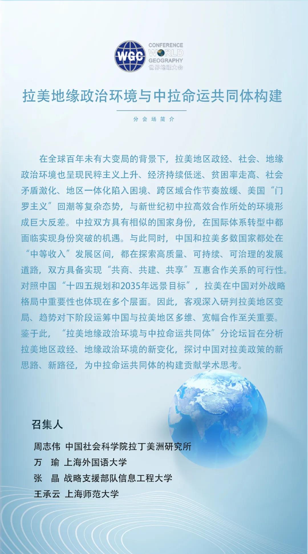 人类只有一个地球,各国人民休戚与共。当今世界,科技进步日新月异,物质财富不断地积累,人类文明发展到历史最高水平;但另一方面,流行疾病肆虐全球,地区冲突频繁发生,气候变化加剧全球危机,对人类生存和发展构成重大挑战。世界地理大会努力为肩负新的历史使命的地理学人,提供地理科学科研创新重大进展的发布平台、青年学者及研究生学术成果发表的交流平台。