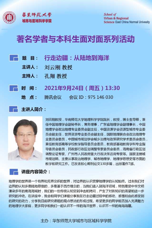 讲座信息|华南师大刘云刚教授做“行走边疆:从陆地到海洋”主题讲座